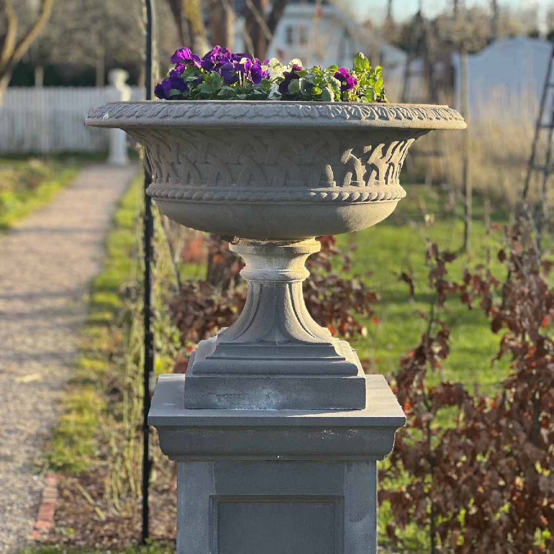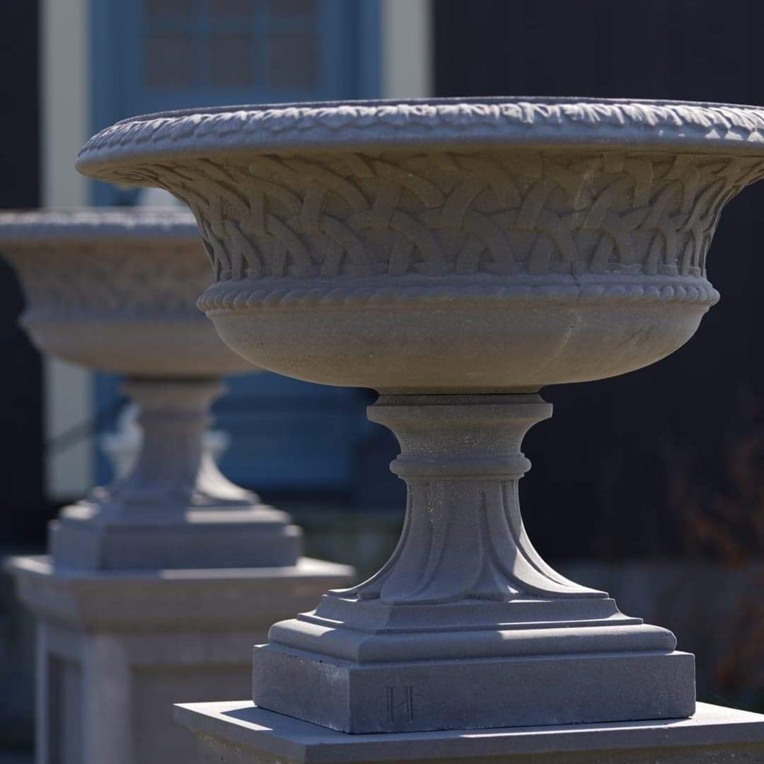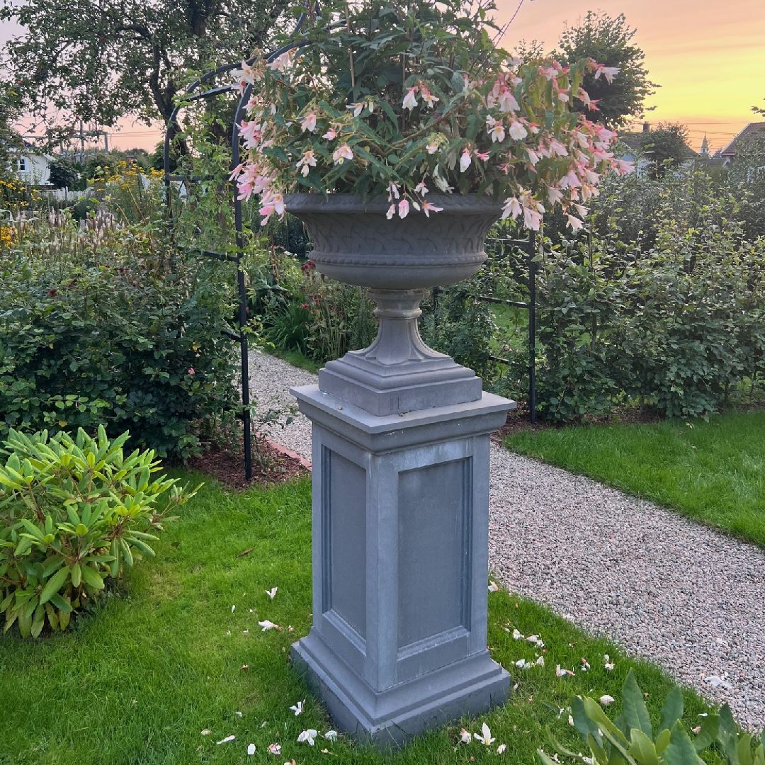 Den lekre Eastwell Urnen er en stor, elegant blomsterurne, perfekt for den klassiske stilen utendørs. Lekker som fokuspunkt i hagen, eller på terrassen. Eastwell-serien ble opprinnelig bestilt for Eastwell Manor i Kent og inkluderer en vakker matchende Eastwell vannfontene som vi også har tilgjengelig fra Haddonstone.(se under Fontener)
