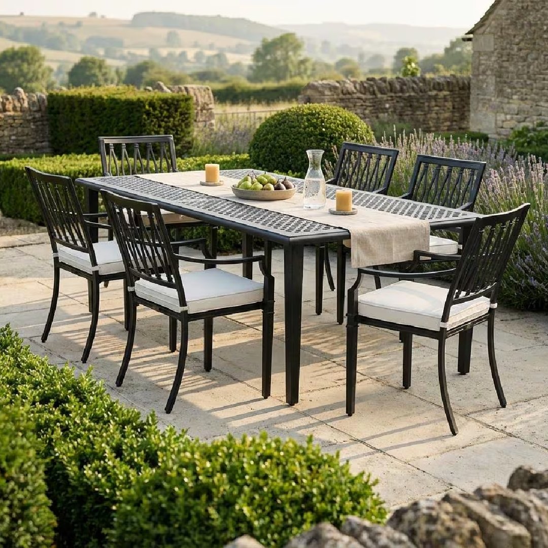 Oxley’s har produsert luksuriøse hagemøbler håndlaget i Cotswolds, England siden 1991. Hver møbel er sandstøpt individuelt av resirkulert aluminium – en prosess som sparer 95% av energien sammenlignet med ny aluminiumsproduksjon. Møblene er bygget for å vare i generasjoner og kommer med en ledende garanti i bransjen.